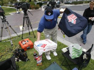 Pred zaporom Lynwood dobesedno bivakirajo cele gruče novinarjev, fotografov in snemalcev. (Foto: Reuters)