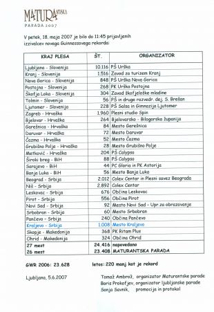 Seznam sodelujočih na letošnji maturantski paradi, kjer je žal sodelovalo 220 maturantov manj kot lani.