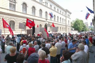 Pred vladnim poslopjem se je zbralo okoli petsto protestnikov.