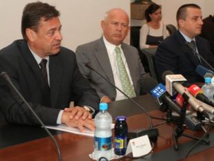 Zoran Janković (od leve), Janez Kocijančič in Joc Pečečnik optimistično napovedujejo prenovo stadiona, ki že dolgo propada.