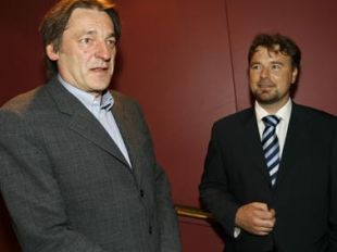 Minister za kulturo Vasko Simoniti in direktor TV Slovenija Jože Možina sta se brez vstopnic komaj prebila v dvorano.