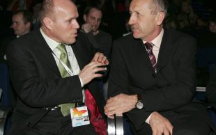 Branko Pavlin (desno, levo Marijan Jurenec, generalni direktor Pop TV in Kanala A) je lahko zaskrbljen. Vsem njegovim edicijam, Dnevniku, Direktu, Nedeljskemu dnevniku in Hopli, naklade precej padajo.