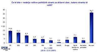 Pahorjevi Socialni demokrati zadržali prednost pred Janševo SDS, Liberalni demokrati so tretji. Zadnji med parlamentarnimi strankami je DESuS.