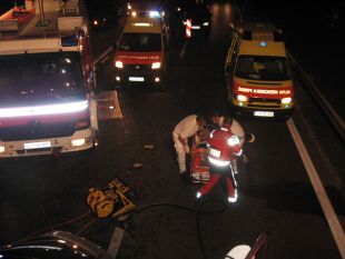 Hudo poškodovano 63-letno Ljubljančanko so prepeljali v Klinični center, vendar je danes žal podlegla poškodbam. (Foto: Gasilska brigada Ljubljana).