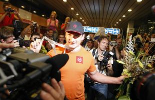Primoža Kozmusa je na letališču pričakalo več kot 400 ljudi...