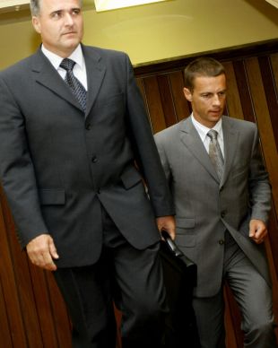 Odvetnik Aleksander Čeferin (desno, levo nekdanji direktor Sove Iztok Podbregar) ni več zastopnik Sebastjana Cimerotiča.