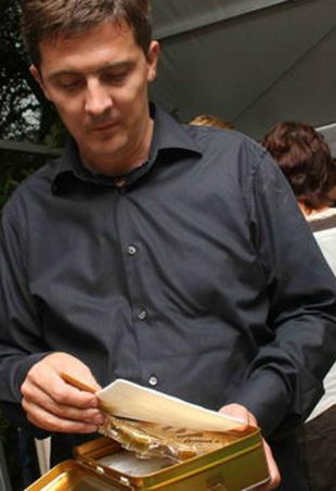 Božidar Novak se pripravlja na pojedino čokoladnih bonbonov.
