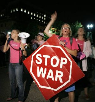 Med govorom ameriškega predsednika so se pred Belo hišo zbrali protestniki, ki so zahtevali konec krvave vojne v Iraku. (Foto: Reuters)