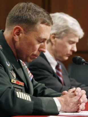 General David Petraeus (levo) in veleposlanik Ryan Crocker sta pred dnevi v kongresu zatrjevala, da se stanje v Iraku izboljšuje, vendar potrebujejo še nekaj časa.