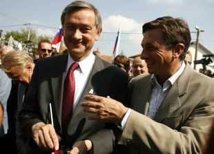 Predsedniški kandidat Danilo Türk in prvak SD Borut Pahor sta bila dobro razpoložena. (Foto: Sta)