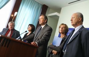 Predsedniški program so Danilu Türku pomagali pisati tudi nekdanji eldeesovski kulturnik Tone Partljič (od leve), predavateljica Ljubica Jelušič, nekdanja ustavna sodnica Dragica Wedam-Lukič in akademik Vito Türk. (Foto: Sta)