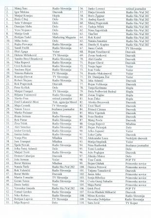 Prvopodpisani je Matej Šurc, zunanjepolitični novinar na Radiu Slovenija in nekdanji dopisnik RTV iz Združenih držav, drugi je Igor Mekina iz časnika Dnevnik, tretji pa Matjaž Kranjec iz tednika Hopla, potem se podpis vrstijo. Od Sare Jovič (TV Koper) ...