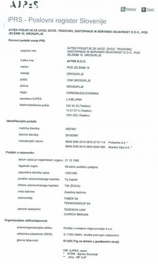 Po podatkih Ajpesa je bila družba Avtek ustanovljena leta 1992, s švicarskim kapitalom, ustanoviteljici pa sta družbi Faber Sa in Teknoxgroup Sa.