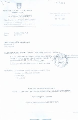 Faksimile: odpoved najemne pogodbe in predlog naloga za izpraznitev poslovnega prostora.