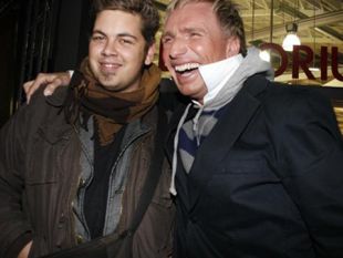 Novinar Nejc Simšič je na modno revijo priletel naravnost s svoje predstave Jutri začnem, Igro Jelen - Iggy, razvpiti celjski koreograf, pa je dogodek režiral. (Foto: Asa)