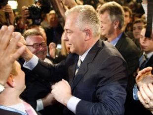 Veliki zmagovalec hrvaških volitev Ivo Sanader se je veselil s svojimi podporniki ...
