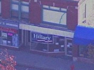 Posnetek pisarne Clntonove iz zraka. V njej s eje šest ur odvijala prava drama. Uslužbence je ugrabil in jim grozil z bombo 40-letni Leeland Eisenberg.