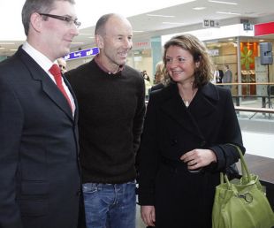 Žiga Debeljak in članica uprave Mercatorja Mateja Jesenek sta medse vzela legendarnega švedskega smučarskega šampiona Ingemarja Stenmarka.