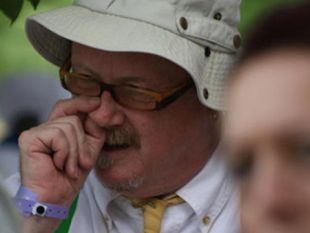 Legendarni slovenski glasbenik Tomaž Domicelj je na pikniku revije Lady izkoristil gužvo in hitro pobrskal po nosu ter iskal mačke.